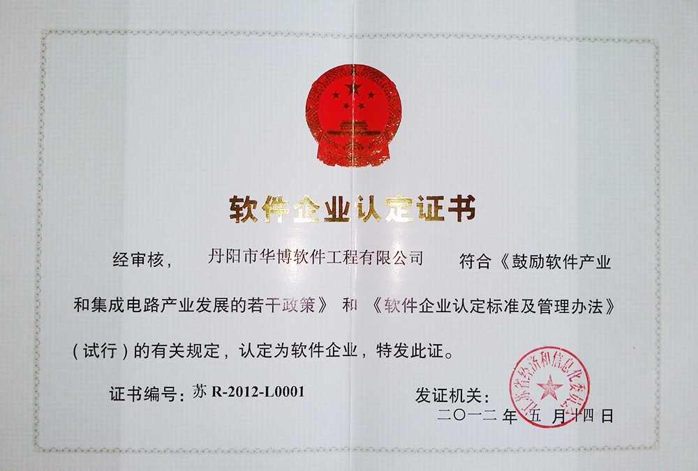 近日,华博软件顺利通过了国家双软认证,被正式认定为软件企业。